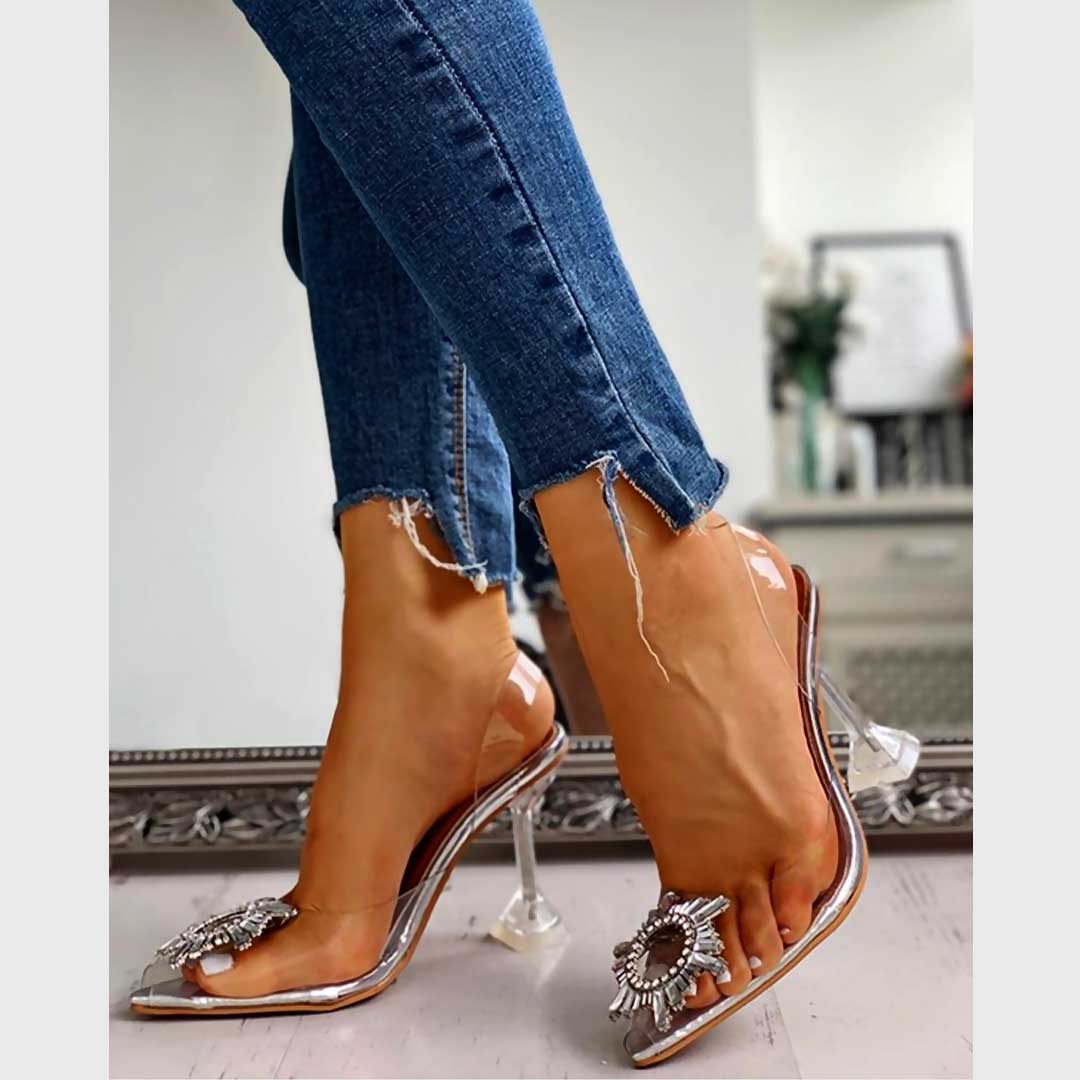 Studded Pointed Thin HeelsStudded Pointed Toe Transparent Thin Heels